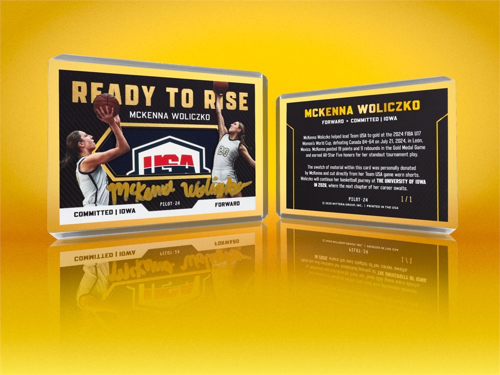 Do NOT miss your chance to own this exclusive MCKENNA WOLICZKO 1/1 collector card. This limited-edition ROOKIE CARD has been personally signed by McKenna Woliczko herself. The swatch of material included within this card was cut directly from player worn items that were personally donated. The enclosed TEAM USA SHORTS were worn by McKenna Woliczko during the 2024 FIBA U17 Women’s World Cup. Team USA defeated Canada 84 – 64 on July 21, 2024 to secure the gold medal. In the championship game, McKenna scored 19 points and grabbed 9 rebounds. McKenna also earned All-Star Five honors for her standout play. This card has been foil stamped with its 1/1 serial number.