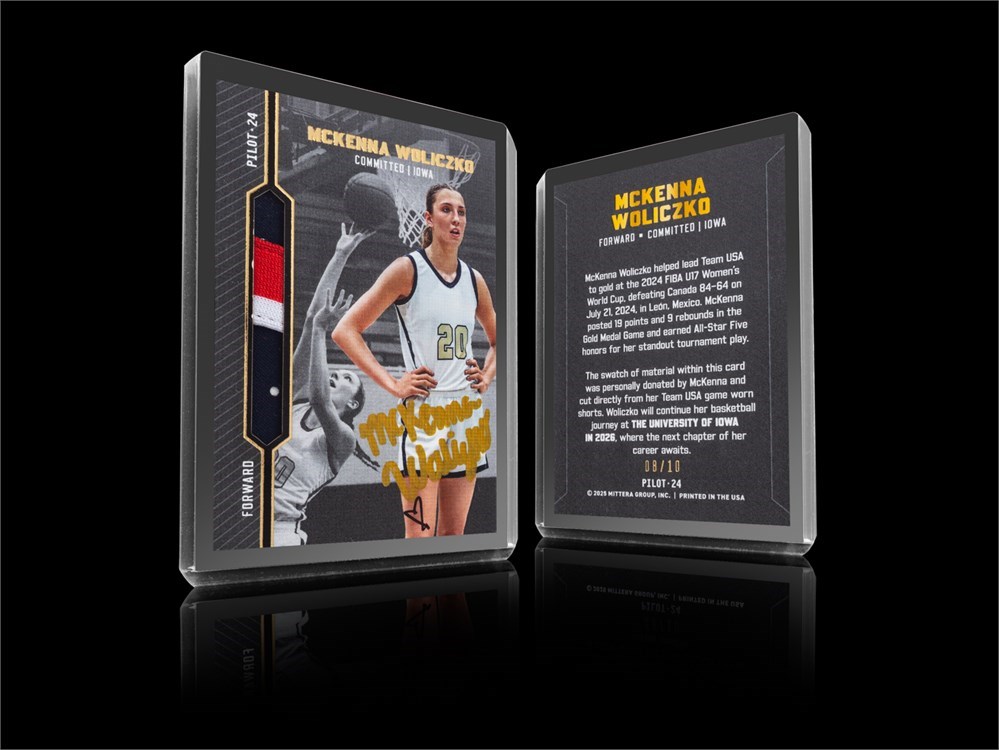 Do NOT miss your chance to own this exclusive MCKENNA WOLICZKO collector card. This limited-edition ROOKIE CARD has been personally signed by McKenna Woliczko herself. The swatch of material included within this card was cut directly from player worn items that were personally donated. The enclosed TEAM USA SHORTS were worn by McKenna Woliczko during the 2024 FIBA U17 Women’s World Cup. Team USA defeated Canada 84 – 64 on July 21, 2024 to secure the gold medal. In the championship game, McKenna scored 19 points and grabbed 9 rebounds. McKenna also earned All-Star Five honors for her standout play. Each card has been foil stamped with its particular serial number that falls within this set of 10 total cards.